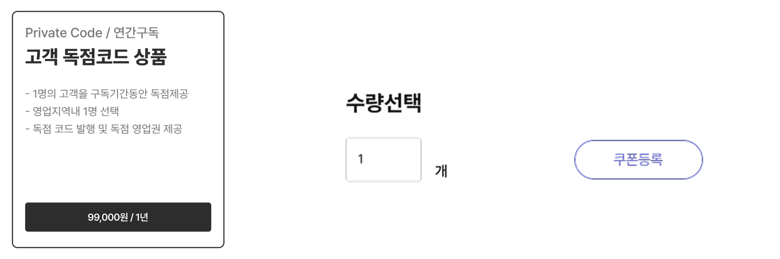1. 발급하고 싶은 독점코드의 개수를 선택하실 수 있습니다.