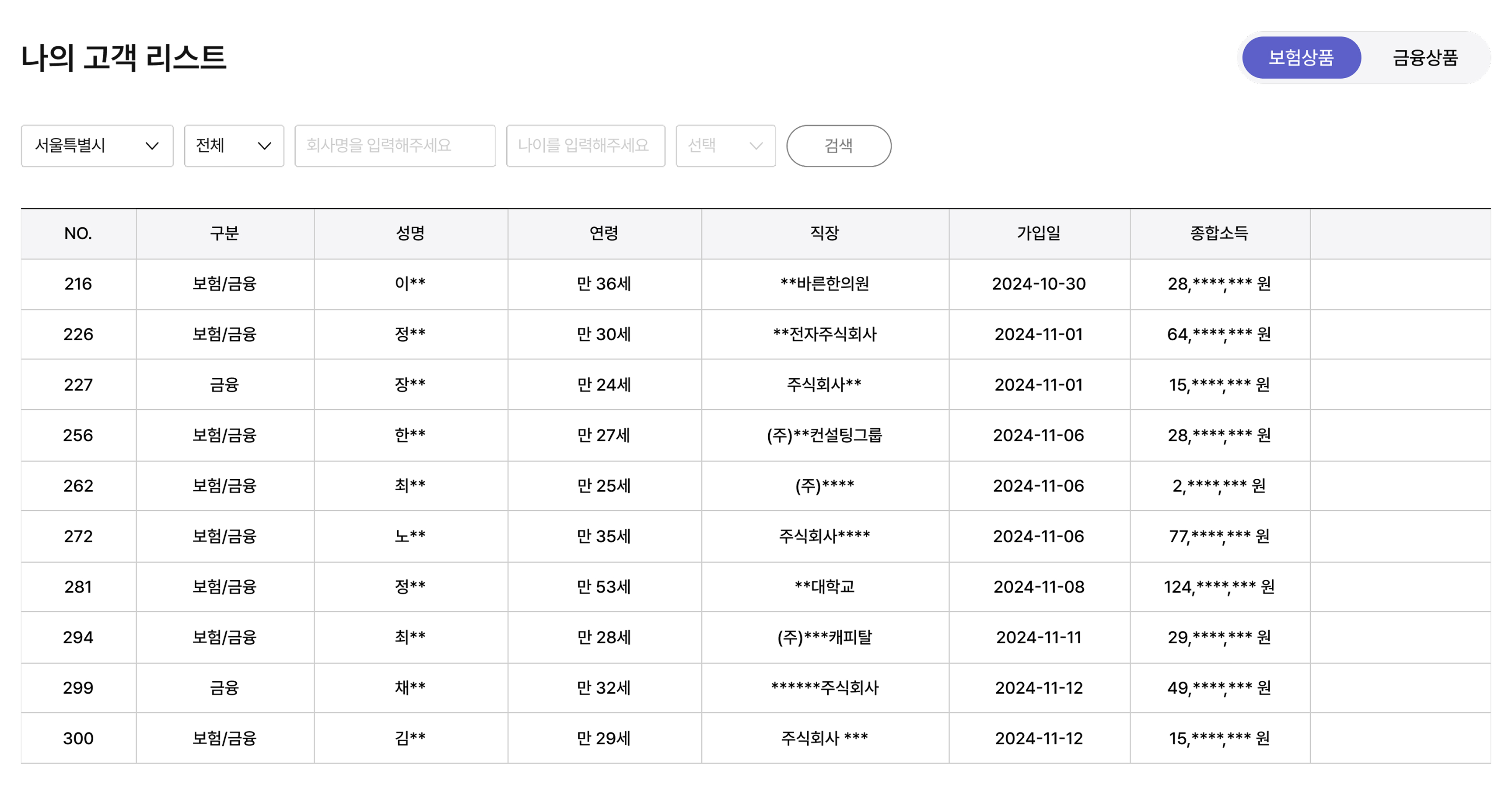 독점코드를 통해 나에게만 노출된 고객 리스트이며 다른 설계사들은 접근 차단된 고객정보입니다.
