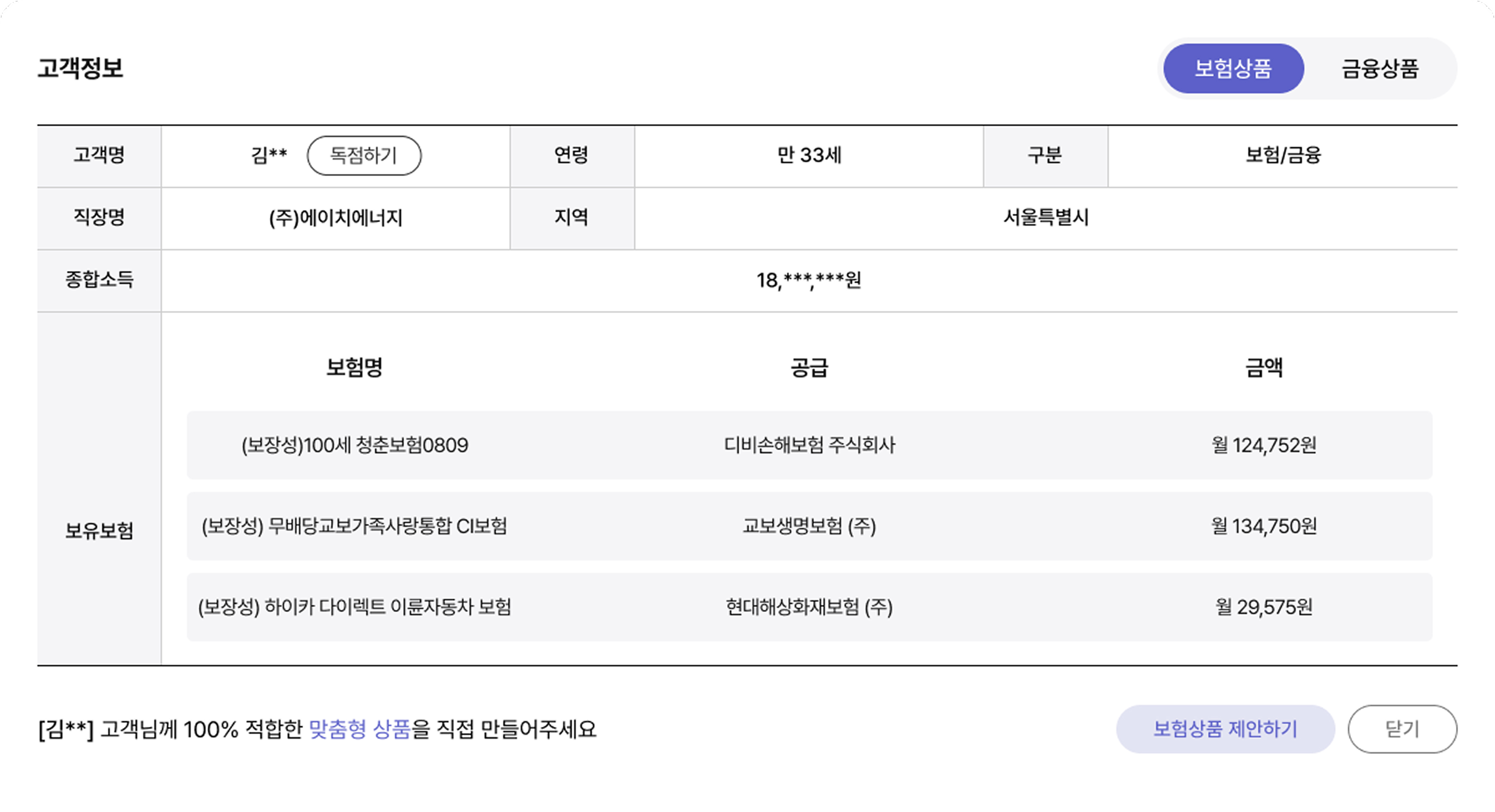 - 가입 보험상품 보험사