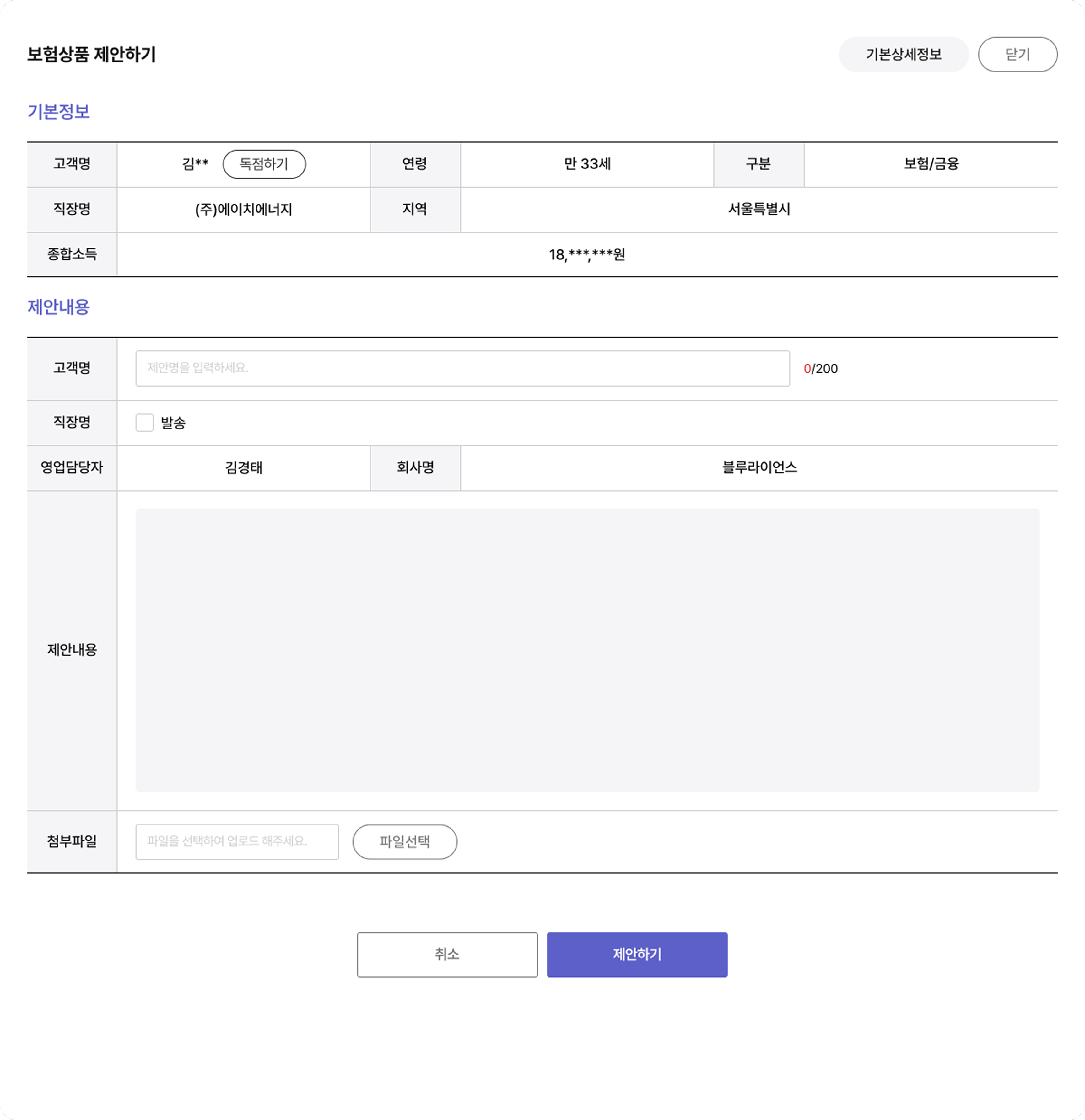처음부터 고객의 성함 전체와 전화번호는 노출되지 않습니다. 고객의 메일로 발송된 제안서를 고객이 수락하면 고객 성함과 전화번호가 노출됩니다.Tip's